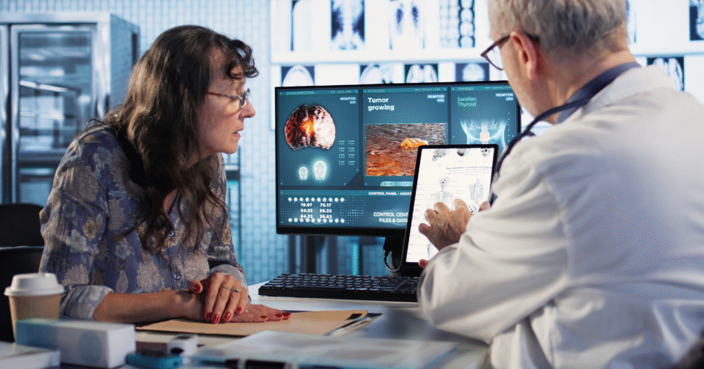 AI algorithms analyze patient history, lab results, and genetic information for accurate diagnoses.